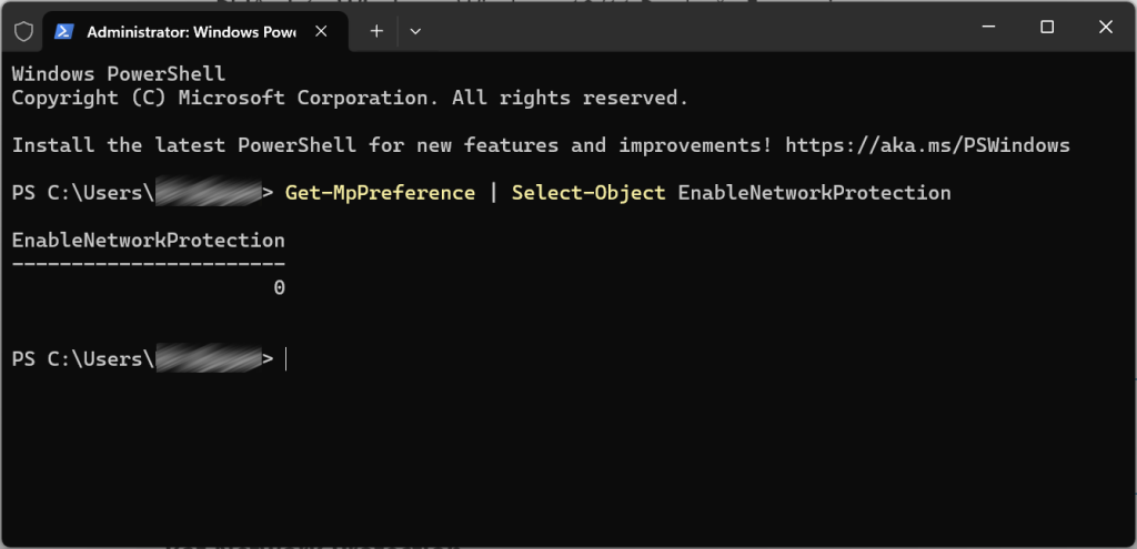 Get-MpPreference | Select-Object EnableNetworkProtection