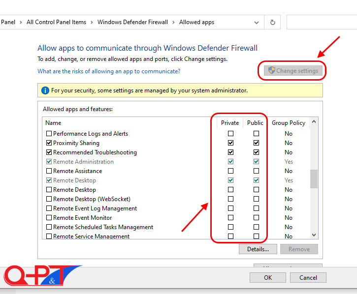 Hỏi: Tôi có nên tích cả hai ô Private và Public không? Đáp: Theo kinh nghiệm kỹ thuật tại QP&T, bạn chỉ nên tích ô Private để đảm bảo an toàn dữ liệu. Chỉ tích Public khi đó là ứng dụng thực sự cần thiết khi bạn di chuyển bên ngoài.