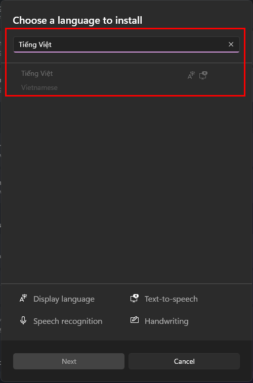 Tìm đến ngôn ngữ hiện có (ví dụ: Vietnamese), nhấp vào biểu tượng ba dấu chấm (…) bên cạnh và chọn Language options.