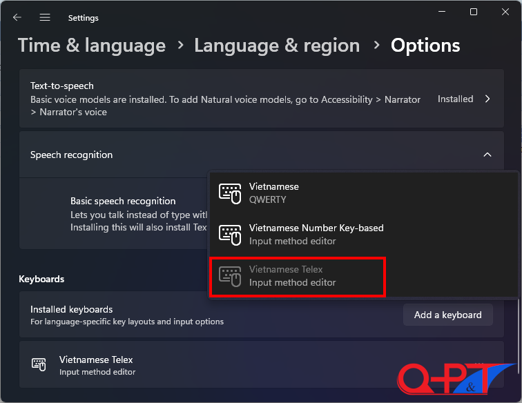 Bạn có thể thêm và tùy chỉnh các bố cục bàn phím này trong phần cài đặt Windows như sau: