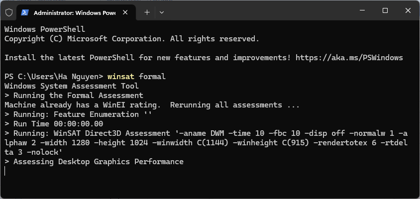 2. Gõ lệnh: winsat formal
