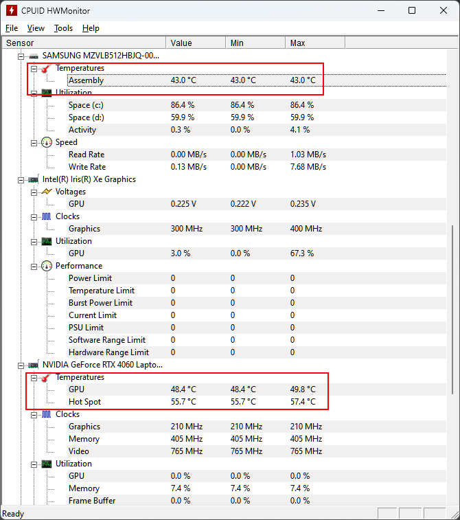 Nhiệt độ cao có thể làm giảm hiệu suất. Dùng các phần mềm như HWMonitor hoặc Speccy để giám sát.