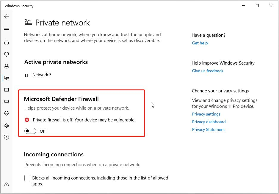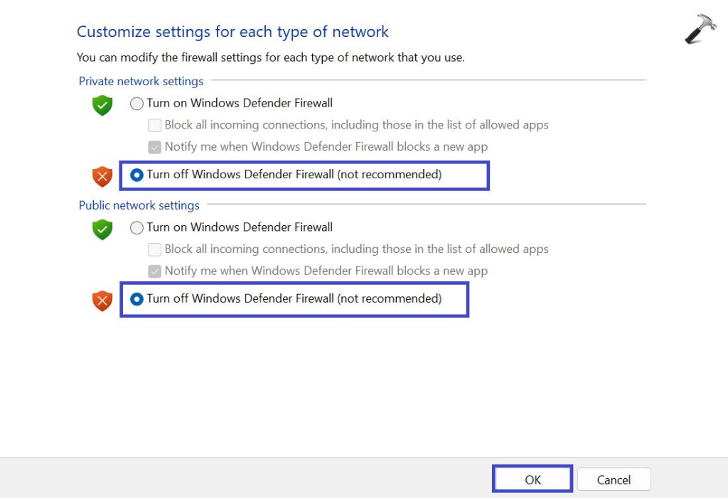 ❌ Turn off Windows Defender Firewall