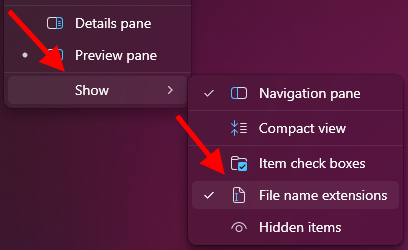- Trên thanh menu, chọn View (Windows 10) hoặc View > Show (Windows 11).