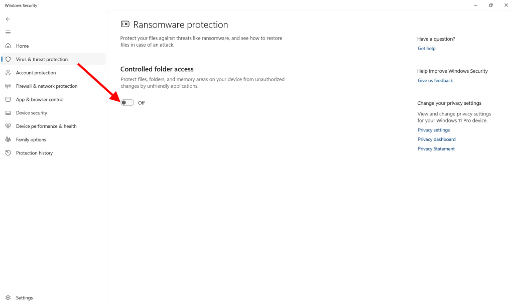 Bước 2: Bật Controlled Folder Access