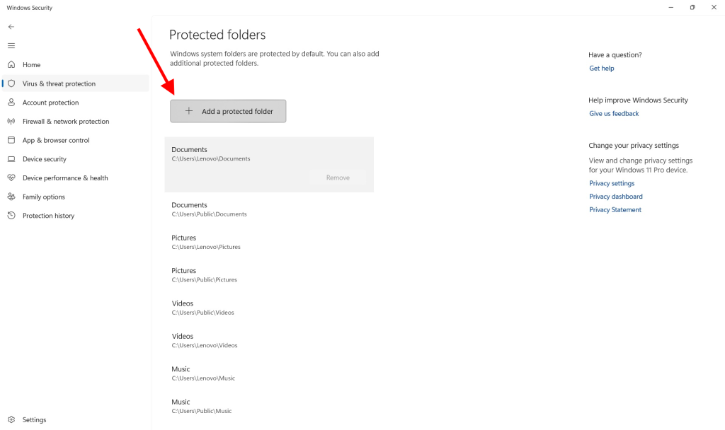 - Nhấp Add a protected folder và chọn các thư mục chứa dữ liệu quan trọng.