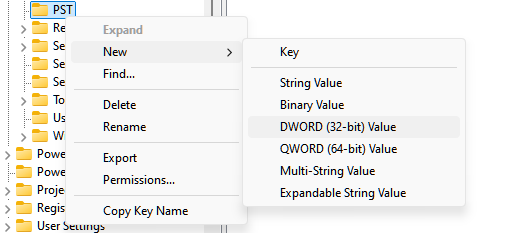 HKEY_CURRENT_USER\Software\Microsoft\Office\16.0\Outlook\PST - Outlook 2013: