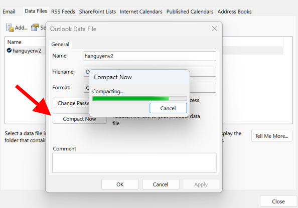 Cách 2: Sử dụng Outlook Compact Tool
