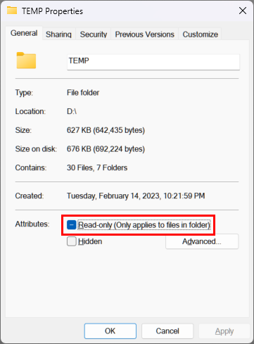 - Trong tab General, bỏ tick ở mục Read-only.
