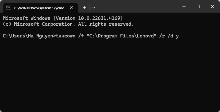 takeown /f "path\to\file_or_folder" /r /d yicacls "path\to\file_or_folder" /grant administrators:F /tThay path\to\file_or_folder bằng đường dẫn file hoặc thư mục.