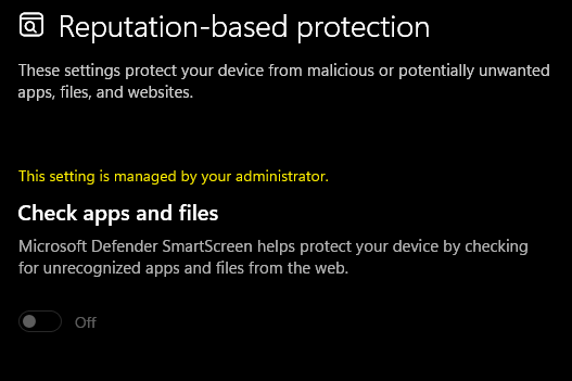 2. Trong phần Reputation-based protection > Check apps and files, chọn Warn hoặc Off