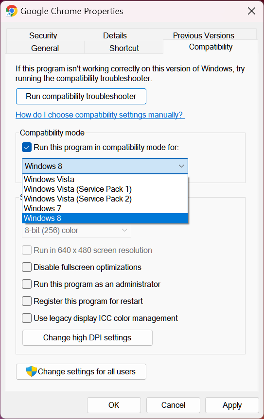 2. Chuyển sang tab Compatibility
