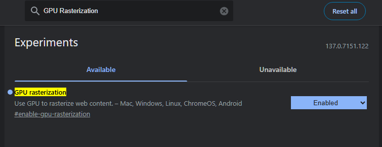 GPU rasterization - Chức năng: Chuyển phần xử lý đồ họa từ CPU sang GPU (card đồ họa), giúp lướt web mượt hơn và tiết kiệm CPU.