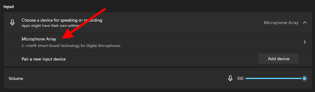 3️⃣ Trong mục Input, kiểm tra xem micro của bạn có xuất hiện không.