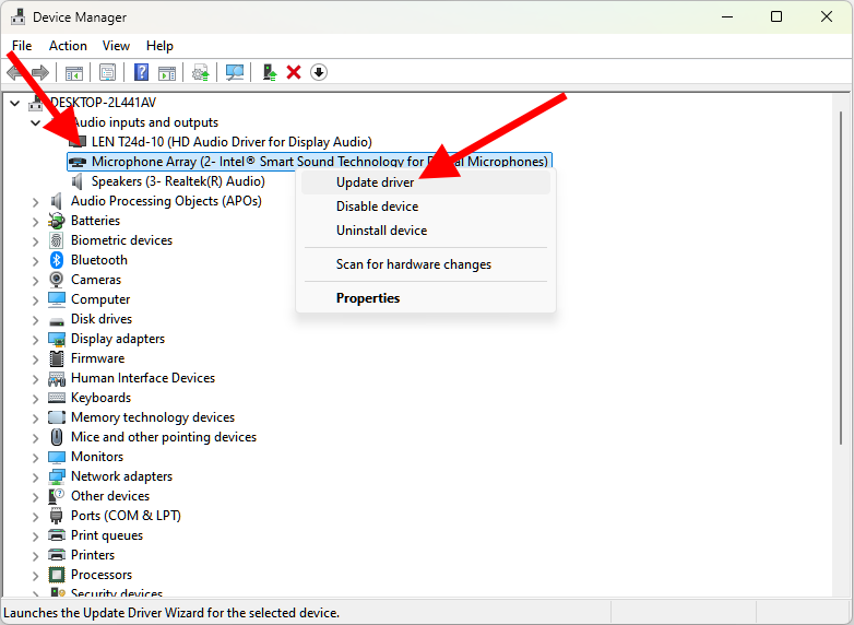 1️⃣ Nhấn chuột phải vào Microphone trong Device Manager.