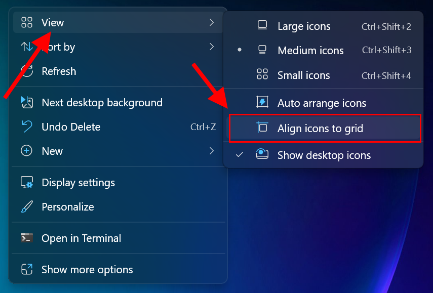- Tích chọn Align icons to grid (Căn biểu tượng theo lưới) để biểu tượng không bị lệch.
