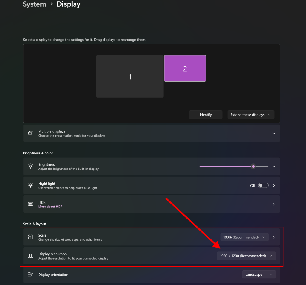 - Chọn từng màn hình và điều chỉnh Display Resolution (Độ phân giải) giống nhau (nếu có thể).