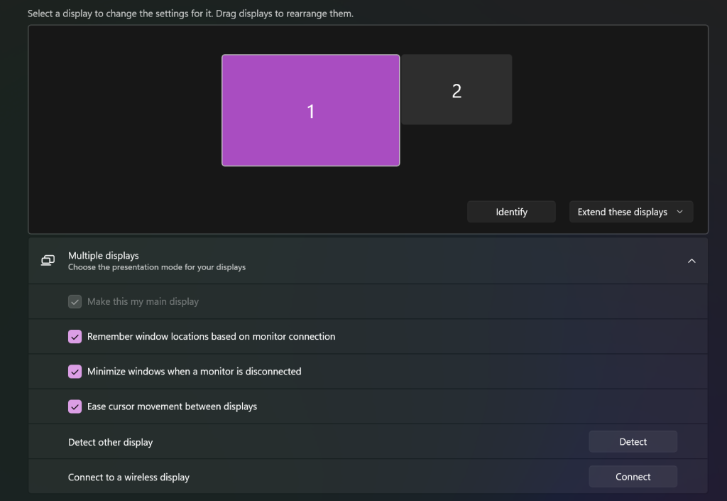 - Mở Settings → System → Display → Multiple Displays