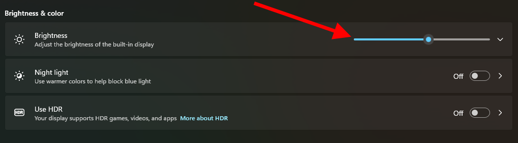 Fn + phím tăng/giảm độ sáng(tùy từng dòng máy). - Hoặc vào Settings > System > Display, kéo thanh Brightness để điều chỉnh.