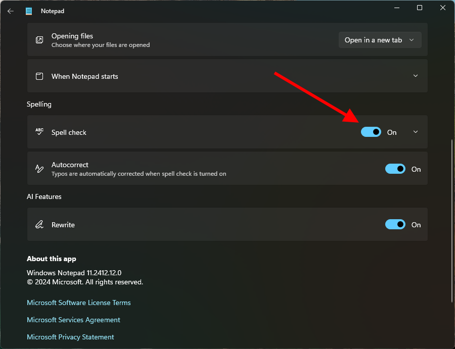 - Sau khi thực hiện thay đổi, đóng cửa sổ cài đặt và thử gõ văn bản trong Notepad để kiểm tra xem Spell Check đã bật hoặc tắt theo ý muốn chưa.